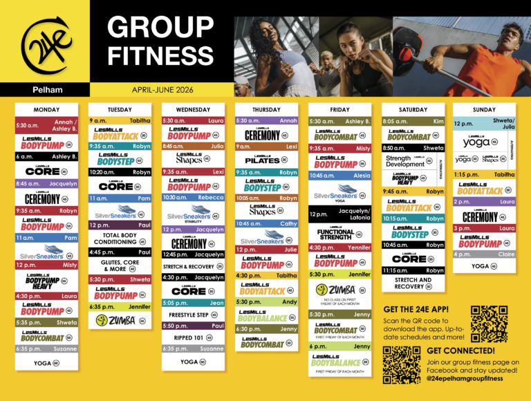 24e Pelham is our largest of the 6 locations with over 45,000 square feet of equipment, class space and amenities. Opened in 2020, 24e Pelham offers everything we have to offer under one roof.